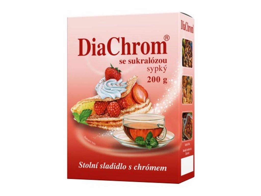 DiaChrom se sukralózou je stolní sladidlo nové generace obohacené trojmocným chrómem, který se podílí na zachování normální hladiny glukózy v krvi. Velkou předností tohoto sladidla je chuť velmi podobná cukru (bez pachutí typických pro běžná stolní sladidla). Je dodáván v balení po 80 nebo 600 tabletách a v sypké formě. Po oslazení nápoje nebo konzumaci cukroví, salátu apod. s tímto sladidlem se současně do těla dostane trojmocný chróm, který se podílí na zachování normální hladiny glukózy v krvi.