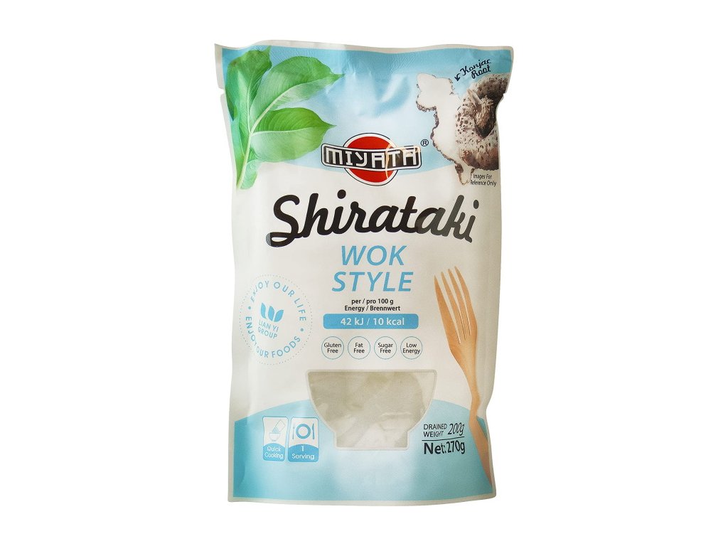 MIYATA Shirataki Wok style (wok nudle) jsou jednou z variant Shirataki těstovin, které slouží jako zdravá náhrada klasických těstovin. Jsou vyrobeny z kořene rostliny zvané Amorphophallus konjac pěstované v různých částech Asie. Konjac obsahuje glukomannan, což je látka, která pomáhá se spalováním tuků a kontrolou váhy. Mimo jiné reguluje krevní cukr a snižuje choresterol v krvi. Proto je konjac ideální potravinou pro regulaci hmotnosti a pro prevenci obezity.