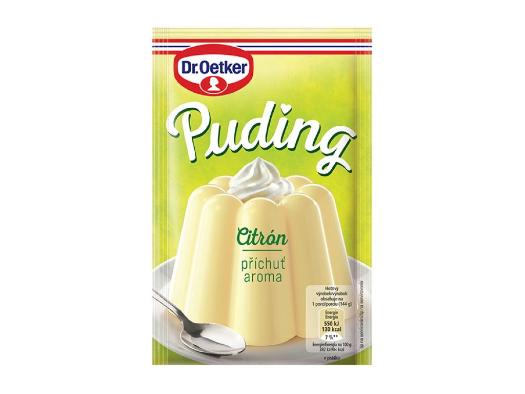 Puding Dr. Oetker citrón v sobě spojuje tradiční českou chuť a vysokou kvalitu Dr. Oetker. Puding je vyroben z pečlivě kontrolovaných surovin. Základem výrobku je kukuřičný škrob. Hotový puding je lehce stravitelný. Vychutnejte si pravou pudingovou klasiku.